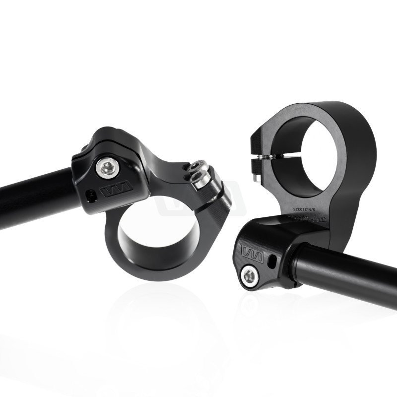 New model of Womet.Tech Clip-Ons has been designed specifically with the driver in mind.The clip-on mounting is at a similar height as in the case of the factory handlebars, but the construction allows for fitting both in the vertical and horizontal axis, depending on the driver's personal conditions.