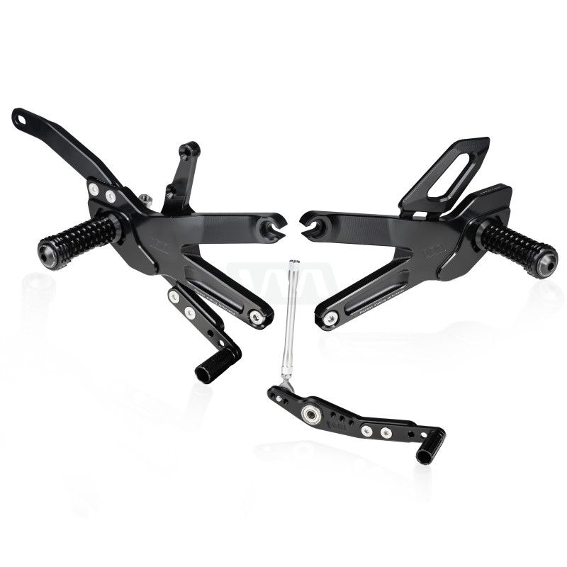 Zestaw lekkich a zarazem bardzo wytrzymałych podnóżków umożliwiających indywidualne dopasowanie w zależności od pozycji jazdy.- Unikalny projekt WMT wykonany zgodnie z wymaganiami wyścigowymi.- Podwójnie łożyskowane dźwignie na łożyskach kulkowych zapewnia brak luzów.- Dzwignie z 3 punktowym mocowaniem cięgna do stosowania standardowej zmiany biegów oraz odwróconej.- Możliwa regulacji długości suwaka w trzech zakresach , aby dopasować ją do każdego rozmiaru stopy.- Obróbka maszynowa zapewnia dużą sztywność i precyzję sterowania przy zachowaniu niskiej wagi.- Wykonane ze stopu lotniczego aluminium. Dodatkowo anodowane.
